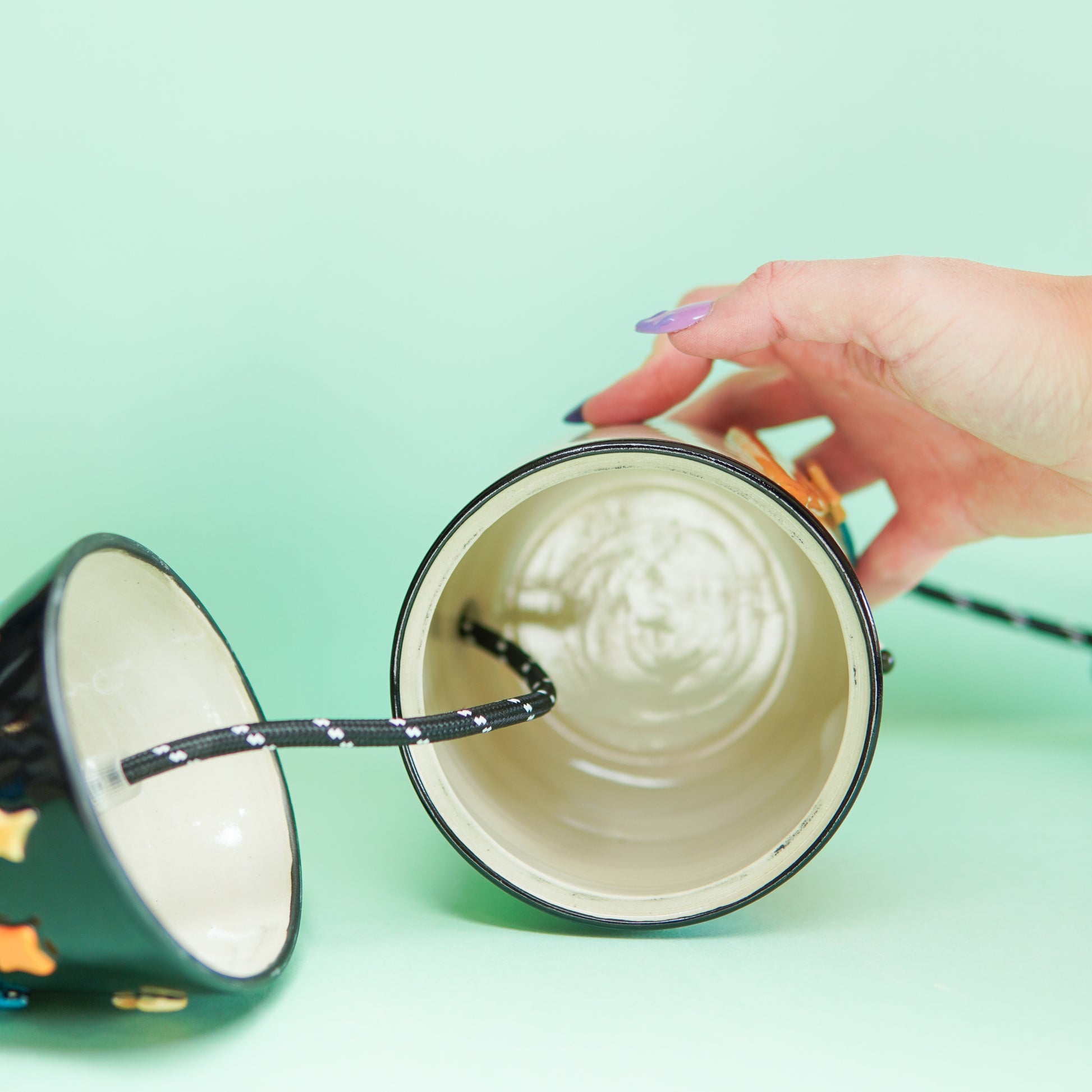 Le chapeau se lève et la pot peut vous servir de vide poche pour des petits objets (parfaitement secs, non conducteurs et de petite taille). Cette pièce est unique et fait main en France.